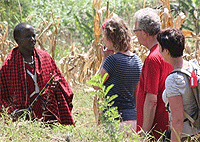 Ngiresi Village Cultural Tour is a guided tour of the farms on the lush slopes of Mount Meru about 7 kilometers out of Arusha Town in Tanzania. Half Day tours include a visit to a private farm to learn more about coffee and tea trees. Get to see the village development projects like the bio-gas, cross-breeding and soil conservation projects on the farm. Visit traditional Wa-arusha houses, Climb Lekimana Hill, and Ngiresi primary school.