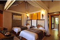 The lodge has 60 luxury tents/ houses and 2 family houses. Each tent/ house is en-suite and features a minibar, tea/coffee making facilities and safety deposit box. The family house has a living area.