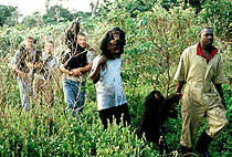 During the walk you will stop occasionally to listen to the calls of the chimps as you look for them in the dense forest.
